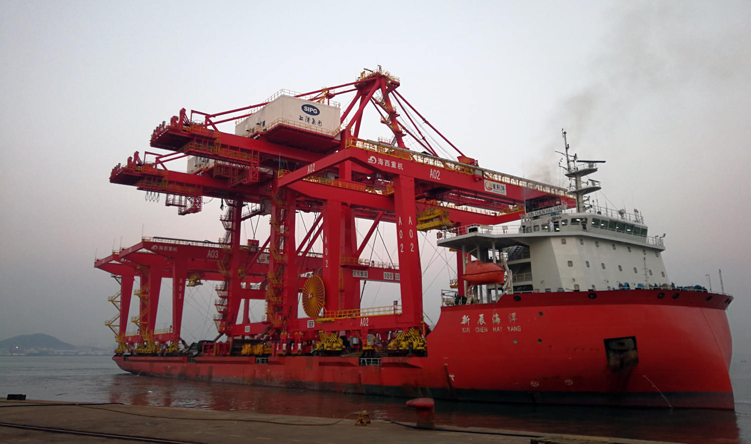 11月18日晚7時50分,G219第一臺機順利滾裝上船;19日早9時40分,G219第二臺順利滾裝上船;在兩臺機滾裝并固定完成后將船舶移位至G215項目的位置,并在當天通過晚上加班將G215第一臺岸橋的滾裝準備工作全部完成。20日早9時30分,G215第一臺機順利滾裝上船,當晚9時,第二臺岸橋安全順利滾裝上船。21日早9時,G219最后一臺機順利滾裝上船。至此,五臺機已全部完成滾裝工作。6次低平潮,5次滾裝和1次移船工作。通過合理的策劃與調(diào)度,充分利用潮水的變化,極大地縮短了裝船的時間,為后續(xù)的發(fā)運和卸船工作爭取了非常寶貴的時間!