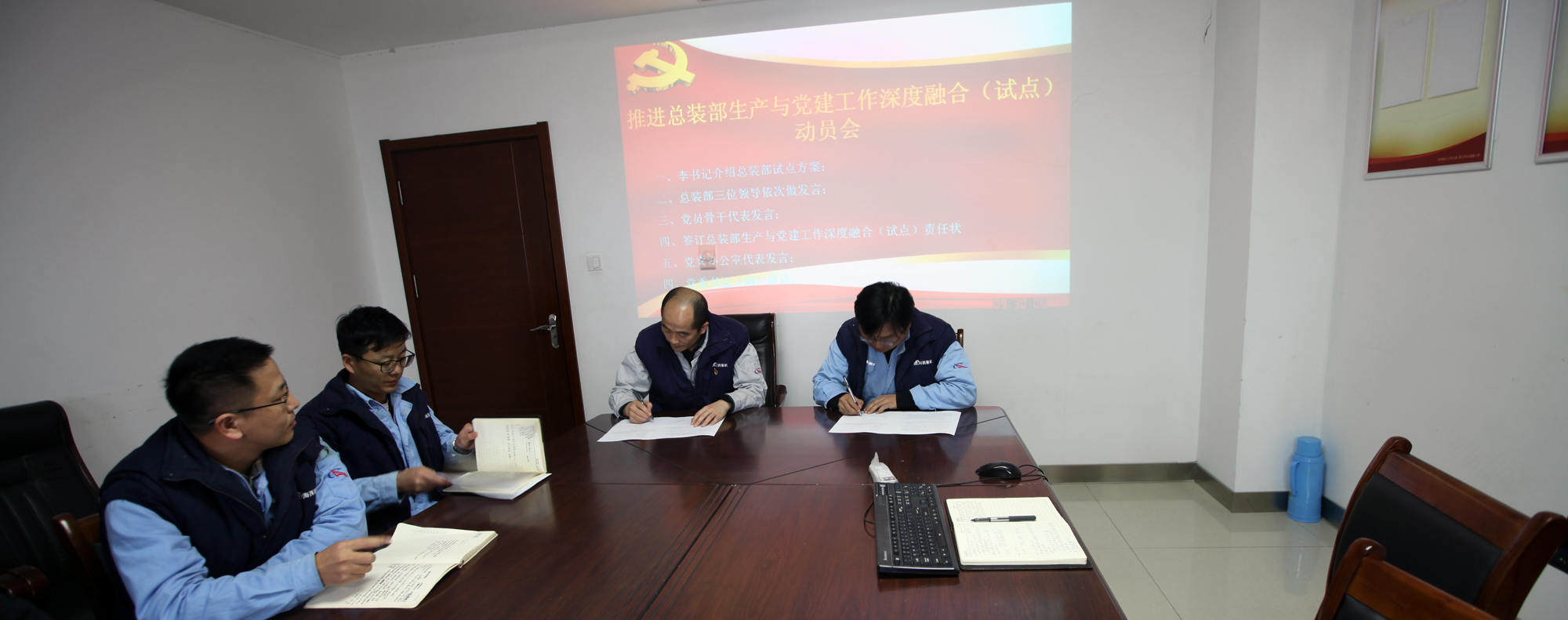 會(huì)上,項(xiàng)目管理黨支部書記、總裝部部長李維剛對(duì)總裝部試點(diǎn)方案做了重點(diǎn)介紹,總裝部三位部門領(lǐng)導(dǎo)以及黨員骨干代表分別作表態(tài)發(fā)言,朱聲凱與李維剛現(xiàn)場(chǎng)簽訂責(zé)任書。