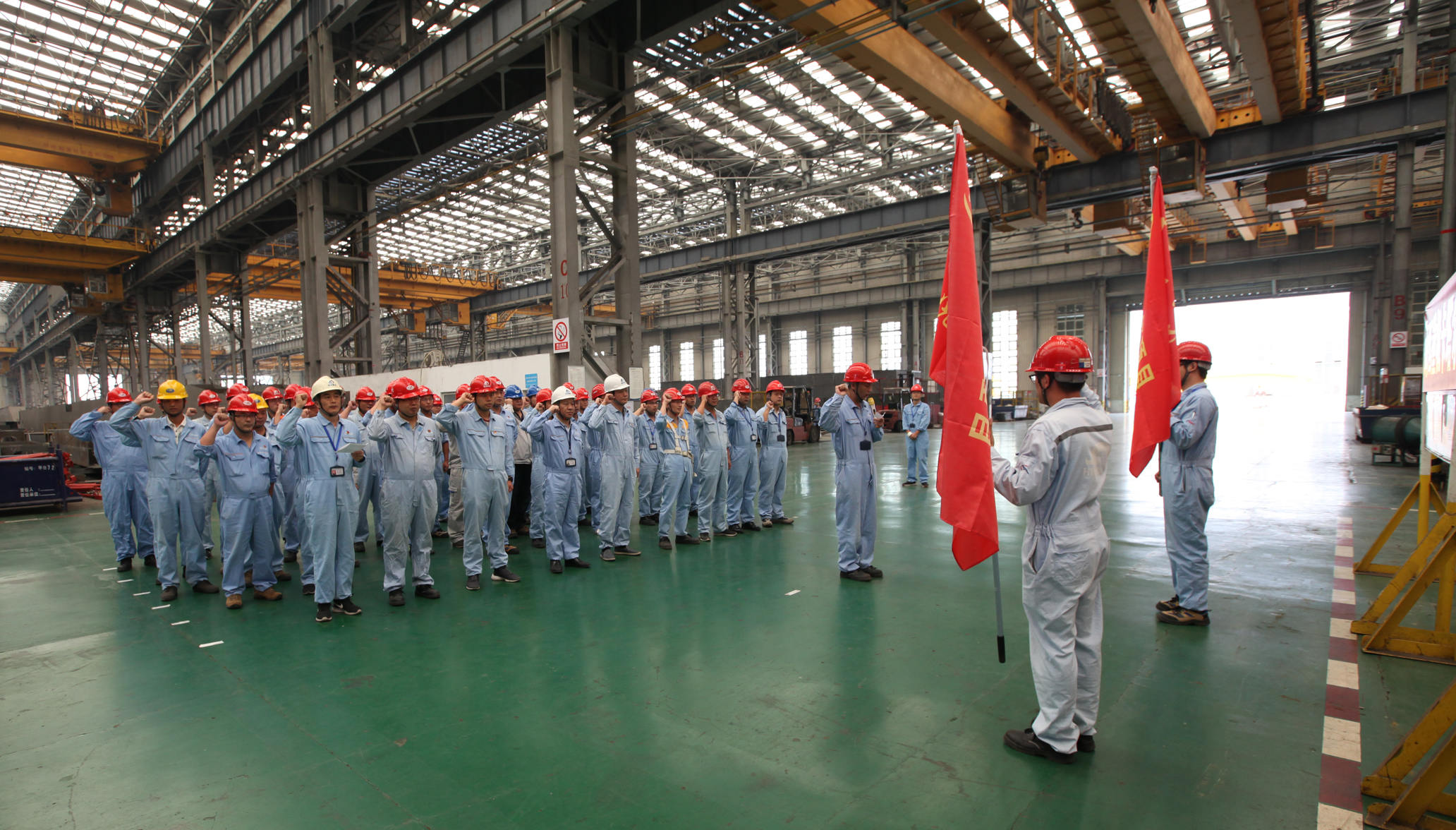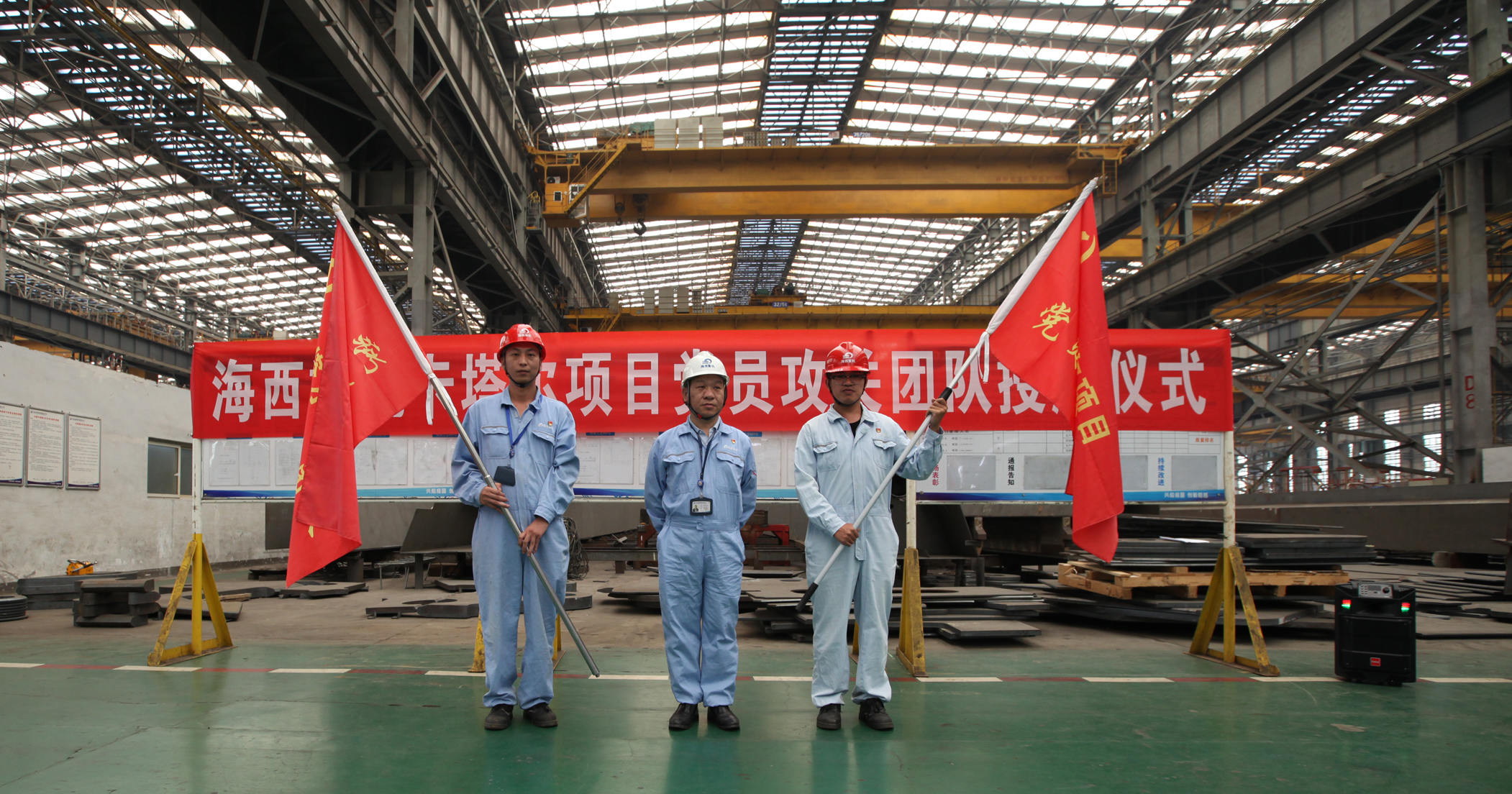 9月20日上午,卡塔爾項(xiàng)目黨員攻關(guān)團(tuán)隊(duì)授旗儀式在海西重機(jī)新鋼結(jié)構(gòu)廠房順利舉行。海西重機(jī)黨委書記、董事長(zhǎng)鄧振山,黨委副書記、總經(jīng)理張懷志,黨委副書記、紀(jì)委書記朱聲凱,黨員骨干以及施工單位負(fù)責(zé)人等50余人參加本次授旗儀式。