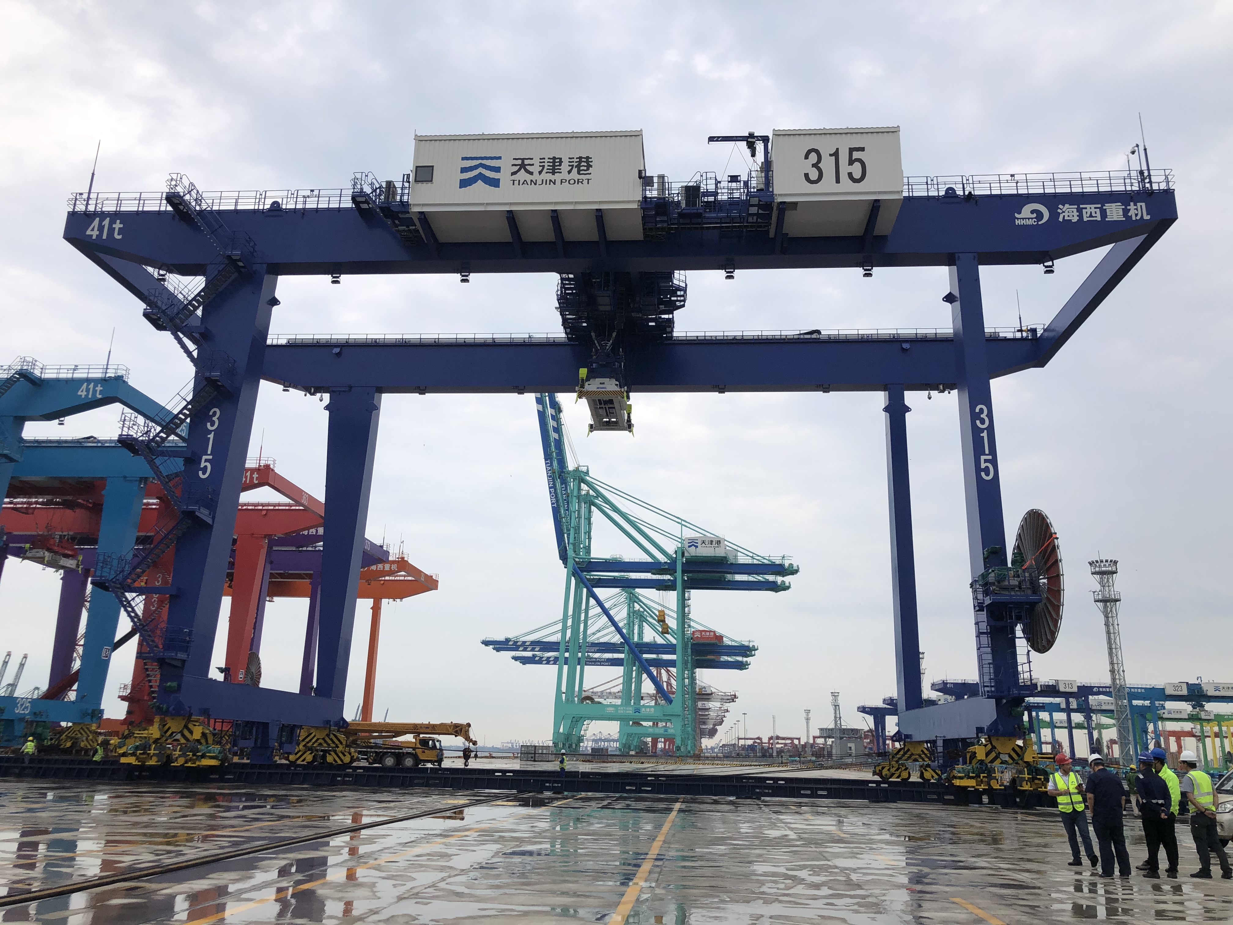 9月25日,中國船舶集團旗下武漢船機海西重機公司為天津港北疆港區(qū)C段智能化集裝箱碼頭二期工程項目打造的首批7臺自動化軌道吊全部順利完成上岸,與一期自動化軌道吊會師天津港。