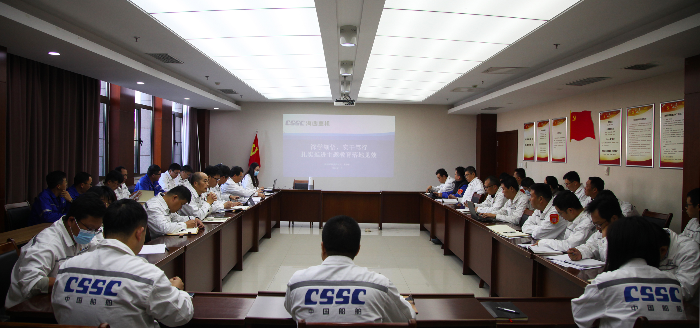 11月6日,中國船舶集團(tuán)旗下武漢船機(jī)海西重機(jī)公司黨委書記、董事長李儒新為中層以上管理人員講授“深學(xué)細(xì)悟,實(shí)干篤行扎實(shí)推進(jìn)主題教育落地見效”主題教育專題黨課。