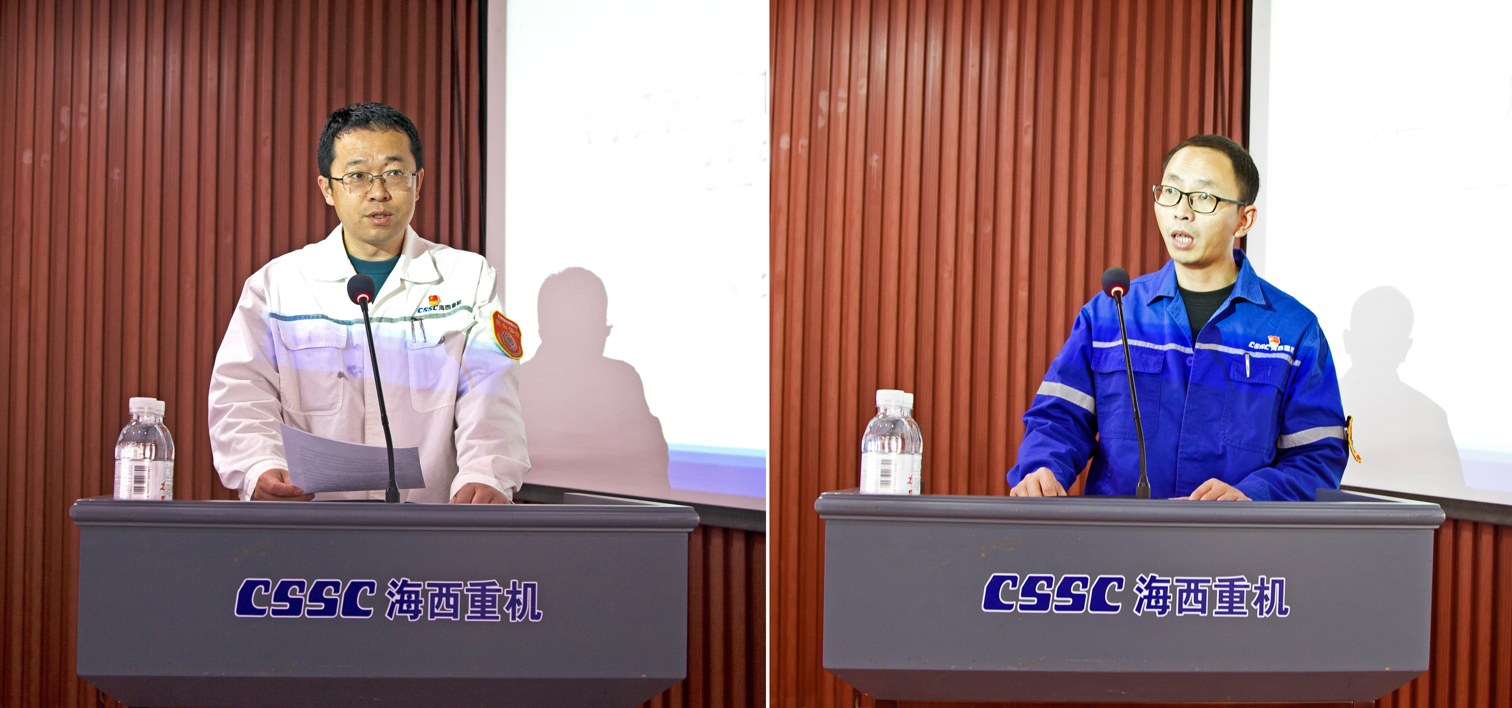會上,海西重機海工部部長商圣偉代表生產部門進行發(fā)言,分享了去年海工項目做的好的工作經驗,同時對今年安全生產工作進行表態(tài),將帶領海工項目團隊順利完成公司黨委交付的任務,為公司高質量發(fā)展交上一份滿意的答卷;項目管理部副部長柯誠同志分享了在濟寧港航龍拱港批量設備交機期間的工作體會,從“品牌、執(zhí)行和學習”三個方面講述了龍拱港干部職工迎難而上、頑強拼博,埋頭苦干、善干巧干、敢于攻堅克難的工作作風。