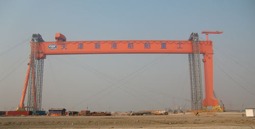 該龍門吊的制造得到了集團公司領(lǐng)導的高度重視。9月14日集團公司吳強副總經(jīng)理對提升前的工作作了重要指示。10月6日集團公司李長印總經(jīng)理蒞臨現(xiàn)場檢查指導工作,并對青島海西重機有限責任公司的工作給予了高度肯定。在整個制造過程中也得到了天津新港船舶重工有限責任公司、中國船級社實業(yè)公司和相關(guān)單位的大力支持和配合。