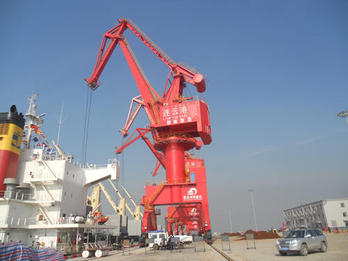 2012年12月25日上午,隨著4臺MQ4043門機(jī)從中國香港籍“金澤”輪上卸下第一鏟紅土鎳礦,江蘇省沿海開發(fā)戰(zhàn)略重要工程, “一體兩翼”規(guī)劃戰(zhàn)略中的重要北翼———連云港贛榆港區(qū)正式開港通航,也標(biāo)志著連云港“以港興市”戰(zhàn)略的飛躍。