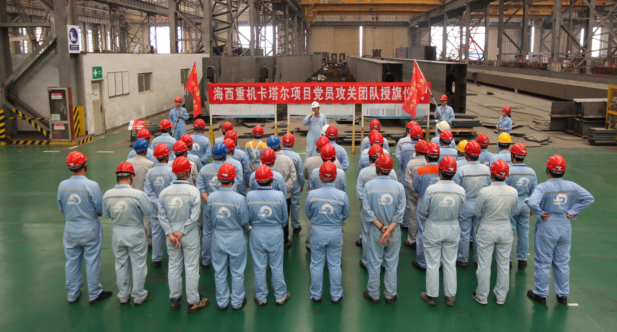 9月20日上午,卡塔爾項(xiàng)目黨員攻關(guān)團(tuán)隊(duì)授旗儀式在海西重機(jī)新鋼結(jié)構(gòu)廠房順利舉行。海西重機(jī)黨委書記、董事長(zhǎng)鄧振山,黨委副書記、總經(jīng)理張懷志,黨委副書記、紀(jì)委書記朱聲凱,黨員骨干以及施工單位負(fù)責(zé)人等50余人參加本次授旗儀式。
