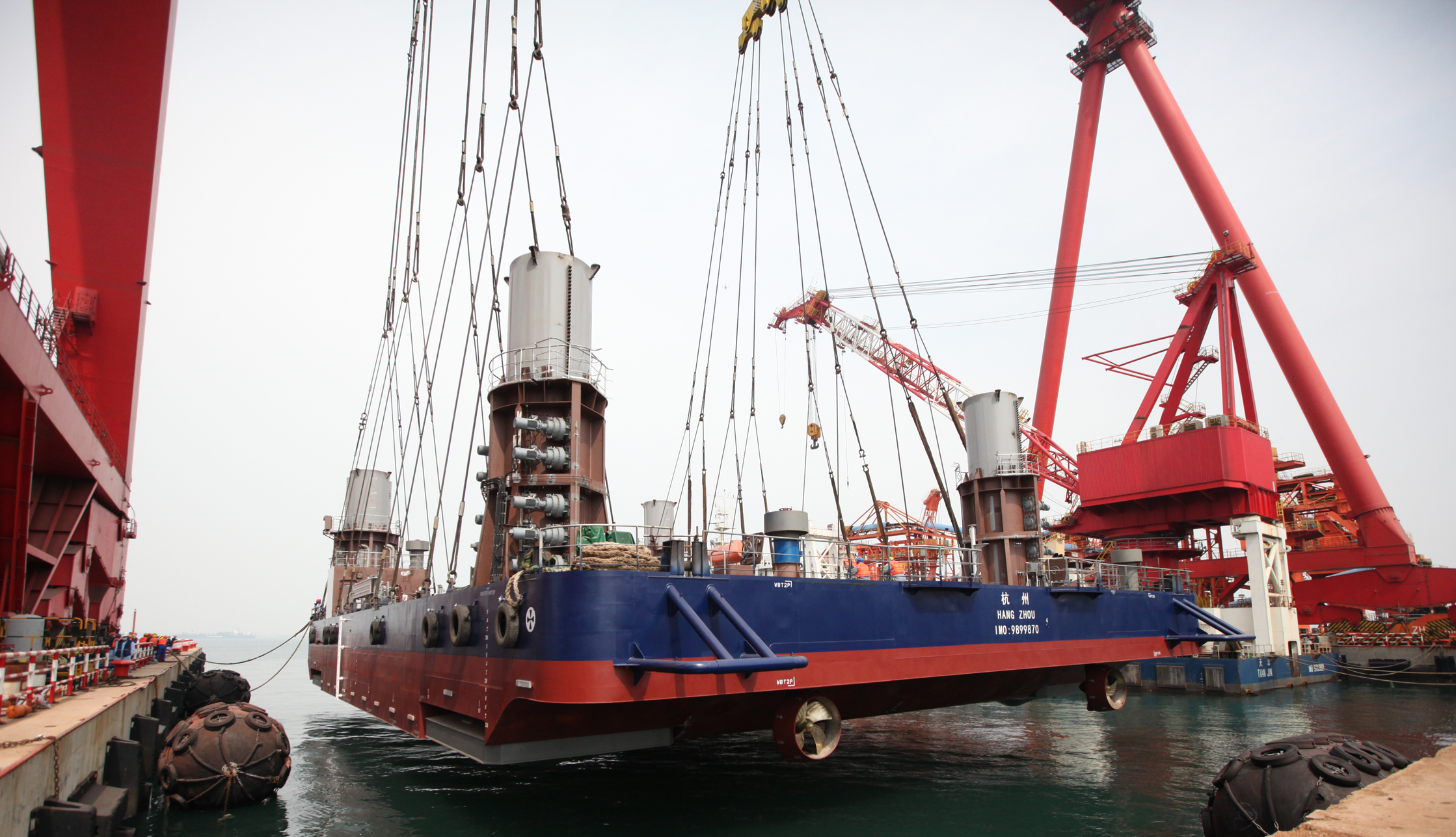 3月31日,海西重機(jī)承接的華東院306自升式海上勘探平臺順利完成吊裝下水,標(biāo)志著該項(xiàng)目順利完成下水大節(jié)點(diǎn)。