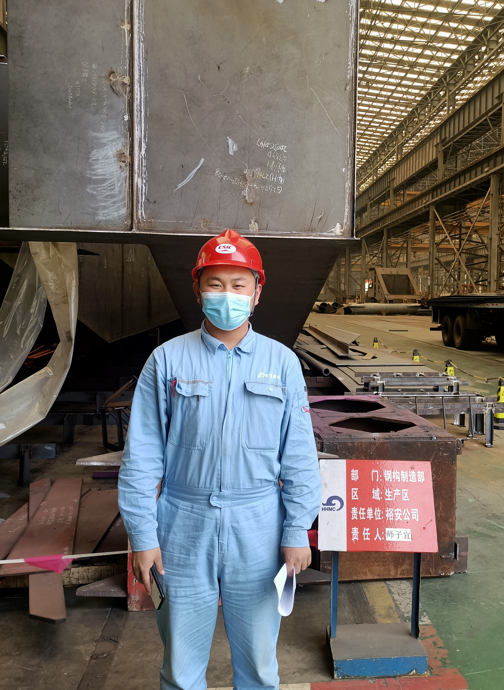 平靜沉默不代表木訥。尹海斐是一個(gè)讓人容易誤解的優(yōu)秀計(jì)調(diào)員,雖然總感覺沉默不語,但絕對(duì)時(shí)刻保持頭腦清醒,不被他人和情緒左右。他擅于從紛繁雜亂的工作情景中,平靜快速的梳理出清晰的頭緒和脈絡(luò),他的第一個(gè)挑戰(zhàn)是K12-05前大梁轉(zhuǎn)運(yùn)吊裝的組織安排工作。接到命令后,第一時(shí)間聯(lián)系工藝落實(shí)技術(shù)方案,組織協(xié)理公司做前期準(zhǔn)備,過程不順利,現(xiàn)場組織嘗試多種辦法無果,轉(zhuǎn)運(yùn)失敗后,他沒有任何抱怨,立刻協(xié)調(diào)相關(guān)人員在港機(jī)所討論并確定具體可行方案,再返回現(xiàn)場組織實(shí)施并全程跟蹤,等到微信群內(nèi)匯報(bào)工作時(shí),只是簡單的一張照片加幾個(gè)字“12-05前大梁,已出”,時(shí)間是晚上10點(diǎn)半。部門周三核對(duì)節(jié)點(diǎn)時(shí),他總是平靜從容,對(duì)每個(gè)節(jié)點(diǎn)涉及的人員設(shè)備安排、物料情況、工藝方案都了然于心,跨工序的協(xié)助欄桿清點(diǎn)物料,落實(shí)安裝條件,真正的做到向前跨一步,向后看一步,是一個(gè)很有計(jì)劃性、很有執(zhí)行力的計(jì)調(diào)員!