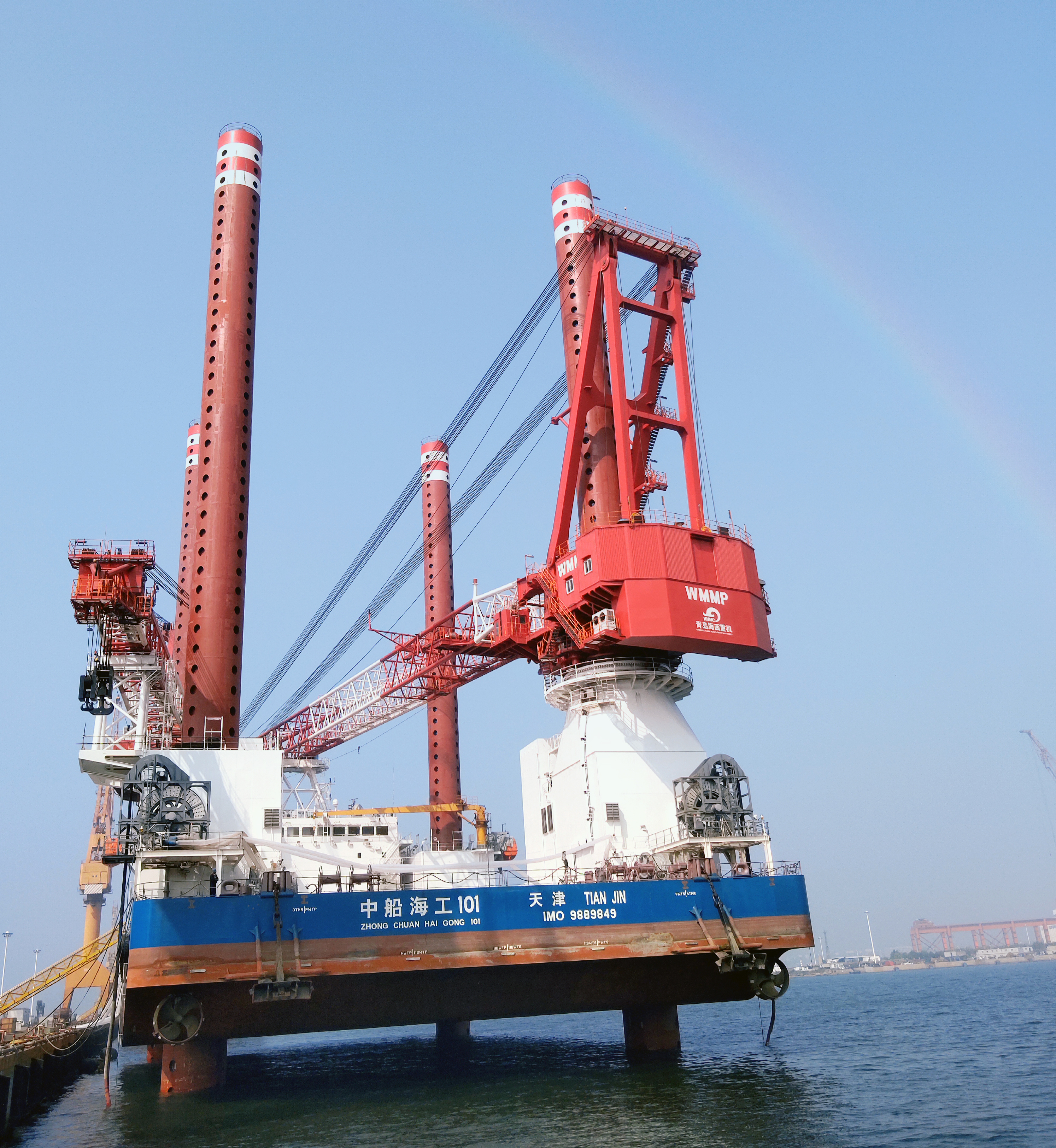 7月31日,大船集團(tuán)山船重工為中船集團(tuán)(天津)海上風(fēng)電公司建造的自升式海上風(fēng)電安裝平臺“中船海工101”順利交付。該平臺的關(guān)鍵設(shè)備350T和1000T繞樁吊(以下簡稱H15項(xiàng)目)由海西重機(jī)負(fù)責(zé)制造、安裝、調(diào)試。