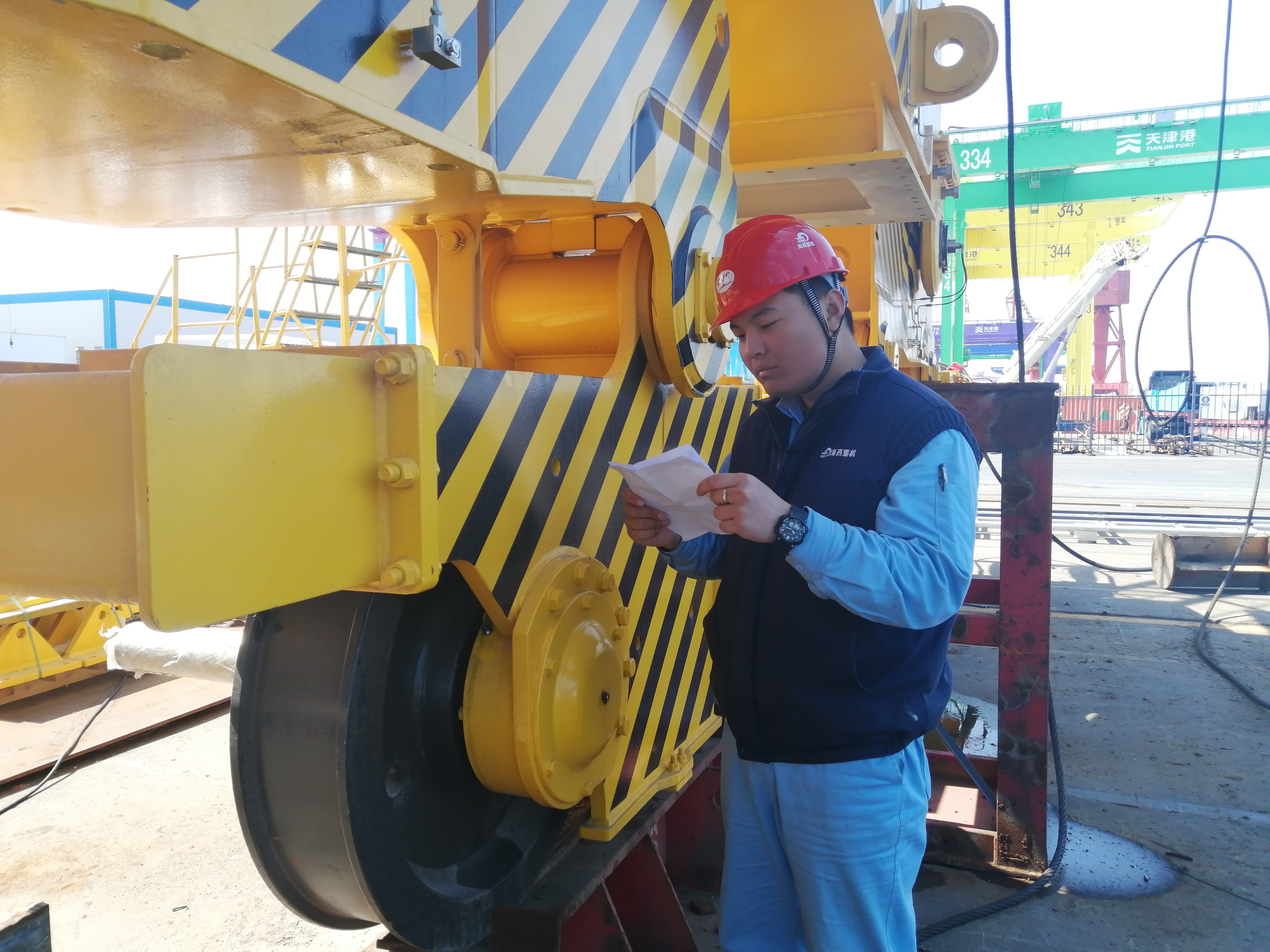 M38A前后大梁吊裝是大件吊裝,對(duì)安全生產(chǎn)要求高,節(jié)點(diǎn)緊急,該項(xiàng)目的具體負(fù)責(zé)人李永健積極想辦法,提前策劃,編制詳細(xì)的吊裝協(xié)調(diào)組織計(jì)劃,吊裝前與安技環(huán)保部、港口機(jī)械工程所開(kāi)展安全技術(shù)交底,協(xié)調(diào)落實(shí)現(xiàn)場(chǎng)施工隊(duì)提前檢查大梁浮動(dòng)物、格柵板固定情況;1600噸龍門吊使用緊張,項(xiàng)目組提前協(xié)調(diào)現(xiàn)場(chǎng)施工人員掛鉤,通過(guò)項(xiàng)目組的努力,1#機(jī)前后大梁吊裝僅用四小時(shí)落位完成,3#機(jī)后大梁落位和4#機(jī)后大梁托輥、耐磨板安裝等節(jié)點(diǎn)也都超前完成,為下一工序節(jié)約了時(shí)間。