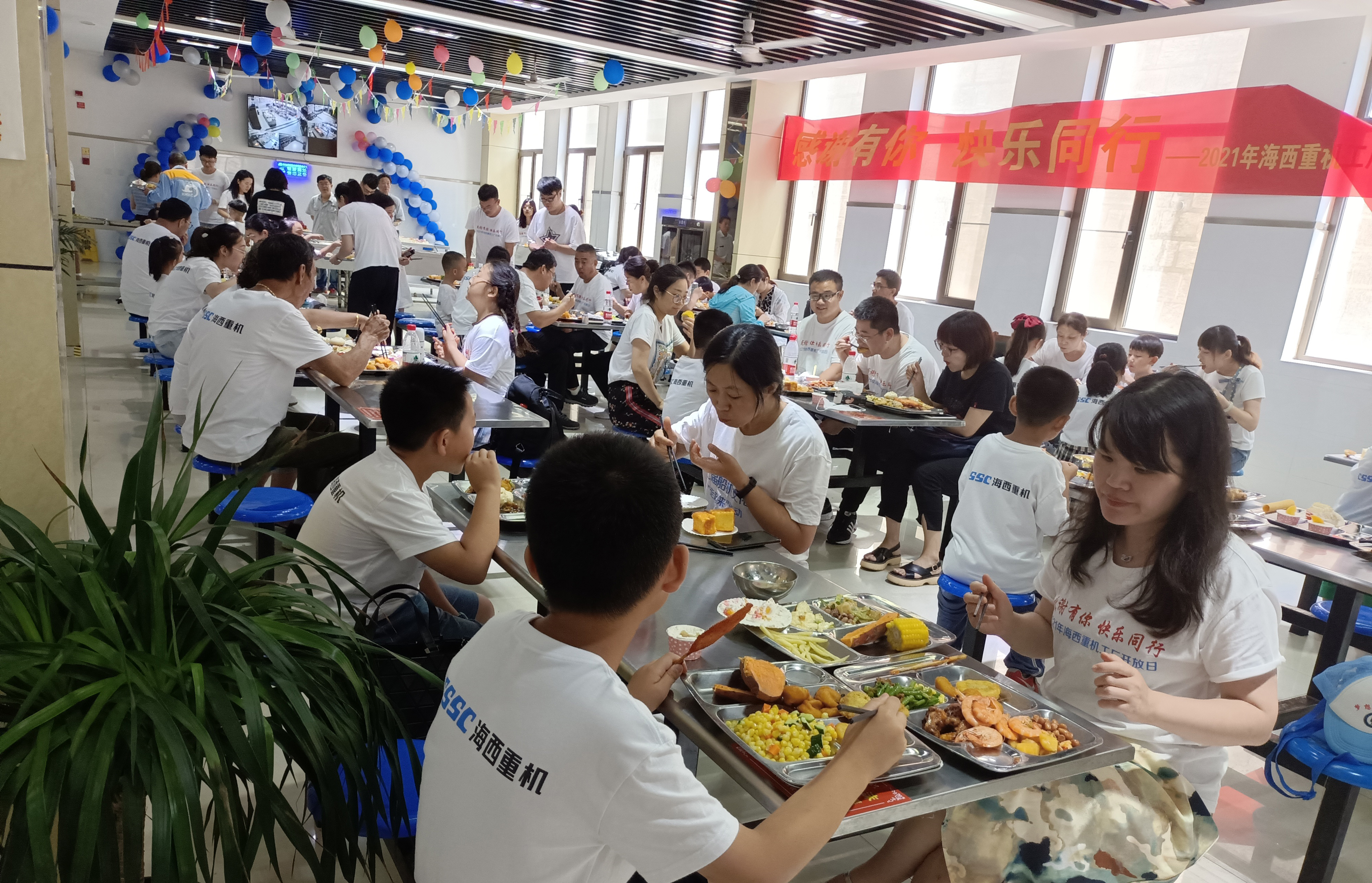 隨后,員工家屬們欣賞了由公司SOUL樂隊(duì)表演的精彩節(jié)目“小手拉大手”,觀看了公司的宣傳片,參觀了公司生產(chǎn)廠區(qū)、1600噸龍門吊、380噸平板車、卡塔爾岸橋項(xiàng)目等,大家邊走邊看,遇到“令自己好奇”的事物就停下腳步詢問工作人員,大家還紛紛合照留念,記錄下這美好的瞬間。時(shí)間飛逝,轉(zhuǎn)眼間就到了午餐時(shí)間,公司精心準(zhǔn)備了豐盛的午餐,水果、甜點(diǎn),應(yīng)有盡有,還專門現(xiàn)場(chǎng)制作了開放日活動(dòng)大蛋糕,家屬們大快朵頤,直呼,“太美味了”。
