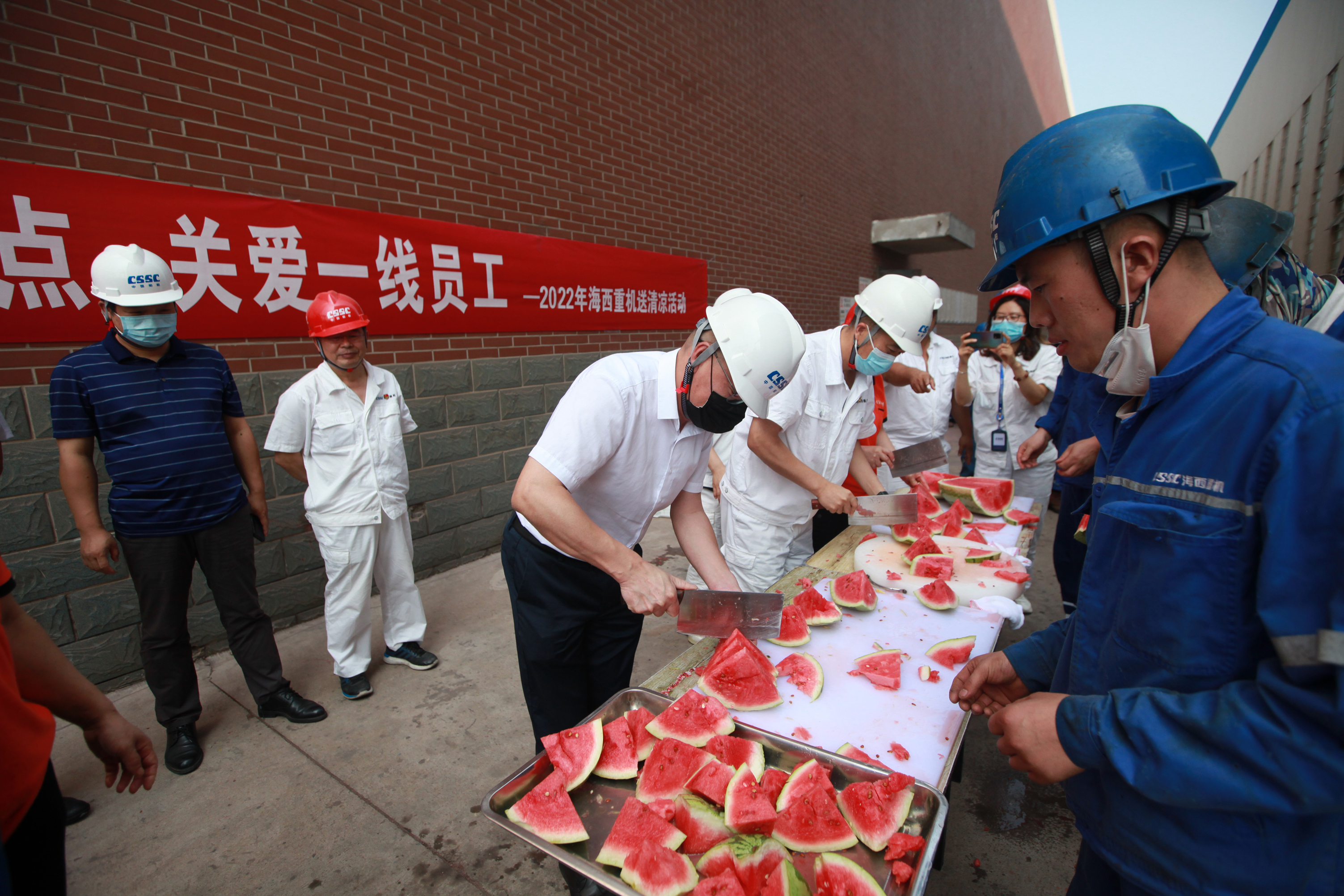 大暑將至,驕陽(yáng)似火,青島開(kāi)啟了“蒸烤”模式。但酷暑并未阻擋海西人大干快干的熱情,各個(gè)項(xiàng)目都在緊鑼密鼓、熱火朝天地推進(jìn)著。為慰問(wèn)奮戰(zhàn)在一線(xiàn)的海西人、傳遞武漢總部及公司的關(guān)心關(guān)愛(ài),近日,中國(guó)船舶集團(tuán)旗下武漢船機(jī)海西重機(jī)公司組織開(kāi)展了以“戰(zhàn)高溫沖節(jié)點(diǎn) 關(guān)愛(ài)一線(xiàn)員工”為主題的2022年送清涼活動(dòng)。
