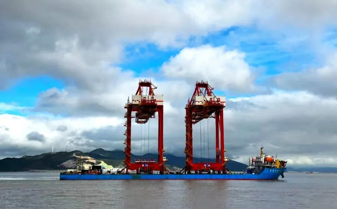 12月14日,中國船舶集團旗下武漢船機海西重機公司為寧波港物資有限公司打造的2臺65t-45m岸橋在寧波舟山港北侖山多用途碼頭順利交機。