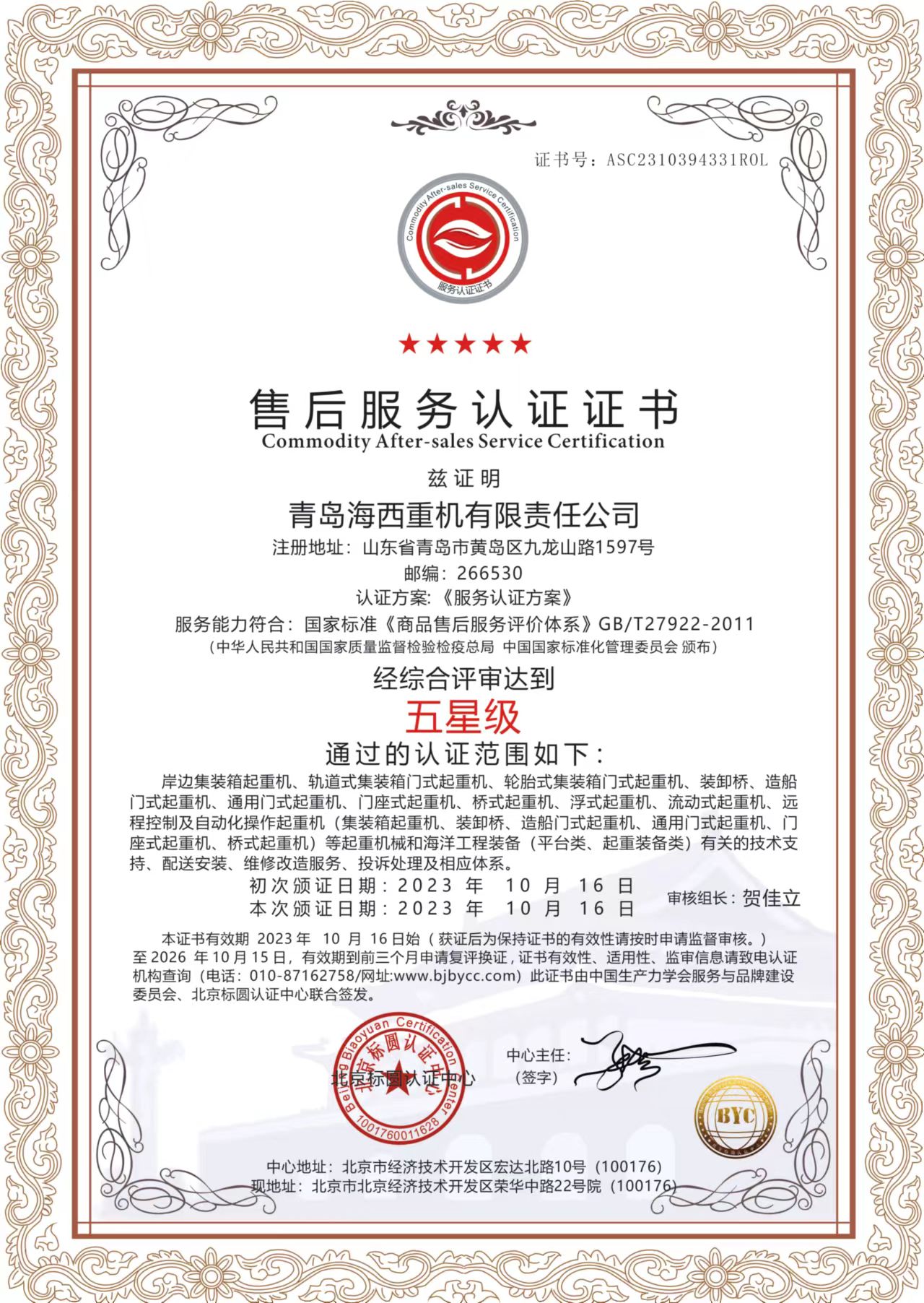 近日,中國(guó)船舶集團(tuán)旗下武漢船機(jī)海西重機(jī)公司售后服務(wù)通過中國(guó)生產(chǎn)力學(xué)會(huì)服務(wù)與品牌建設(shè)委員會(huì)、北京標(biāo)圓認(rèn)證中心聯(lián)合認(rèn)證,榮獲五星級(jí)認(rèn)證證書。這一認(rèn)證的獲得,不僅僅是對(duì)海西重機(jī)售后服務(wù)成果的認(rèn)可,更是對(duì)海西重機(jī)致力于提供優(yōu)質(zhì)服務(wù)能力的肯定。