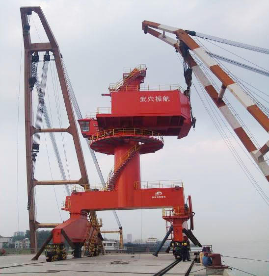 日前,裝載青島海西重機(jī)兩臺(tái)門座起重機(jī)的船舶靠泊武穴振航件雜貨碼頭,經(jīng)過現(xiàn)場工作人員的共同努力,兩臺(tái)門機(jī)順利吊裝完成,屹立于武穴振航碼頭上,成為長江邊上一道亮麗的風(fēng)景線。