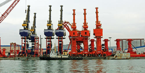 2014年7月10日,這一天,注定是一個(gè)緊張、充滿挑戰(zhàn)而又不平凡的一天!“單船一日三臺(tái)”門(mén)座式起重機(jī)安全順利滾裝上船,再次刷新了公司門(mén)機(jī)整機(jī)單船單日滾裝臺(tái)數(shù)新記錄!